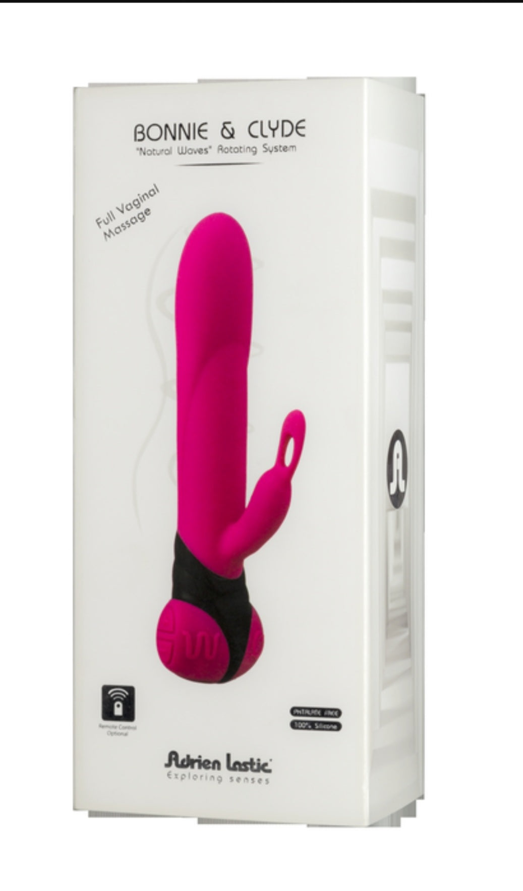 Unique Rechargeable rampant rabbit with innovative natural waves system massaging the whole vaginal canal from top to bottom! Plenty of new sensations to play around, enjoy and share! Bonnie and Clyde Rabbit Vibrator with natural waves system. Can be used with or without remote control. Tickle and tease with this luxurious Silicone Rabbit Vibrator that rotates, vibrates and satisfies with an array of titillating functions. As well boasting a firm shaft, clitoral stimulator and simple controls, the Bonnie and Clyde is ultra quiet.