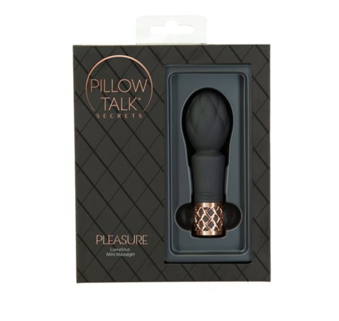 Can you keep a Secret? You may not be able to with the new Pleasure from Pillow Talk Secrets! Pillow Talk Secrets Petite Clitoral Vibrator tempts you to experience real and raw Pleasure! The elegant simple design of this mini wand features a quilted pattern with rounded peaks and valleys. Pleasure may look small, but the power inside is anything but! Using the incredible Power Bullet motor, this mini wand delivers deep rumbles at varying speeds to take you from luxurious massage to leg shaking orgasm.