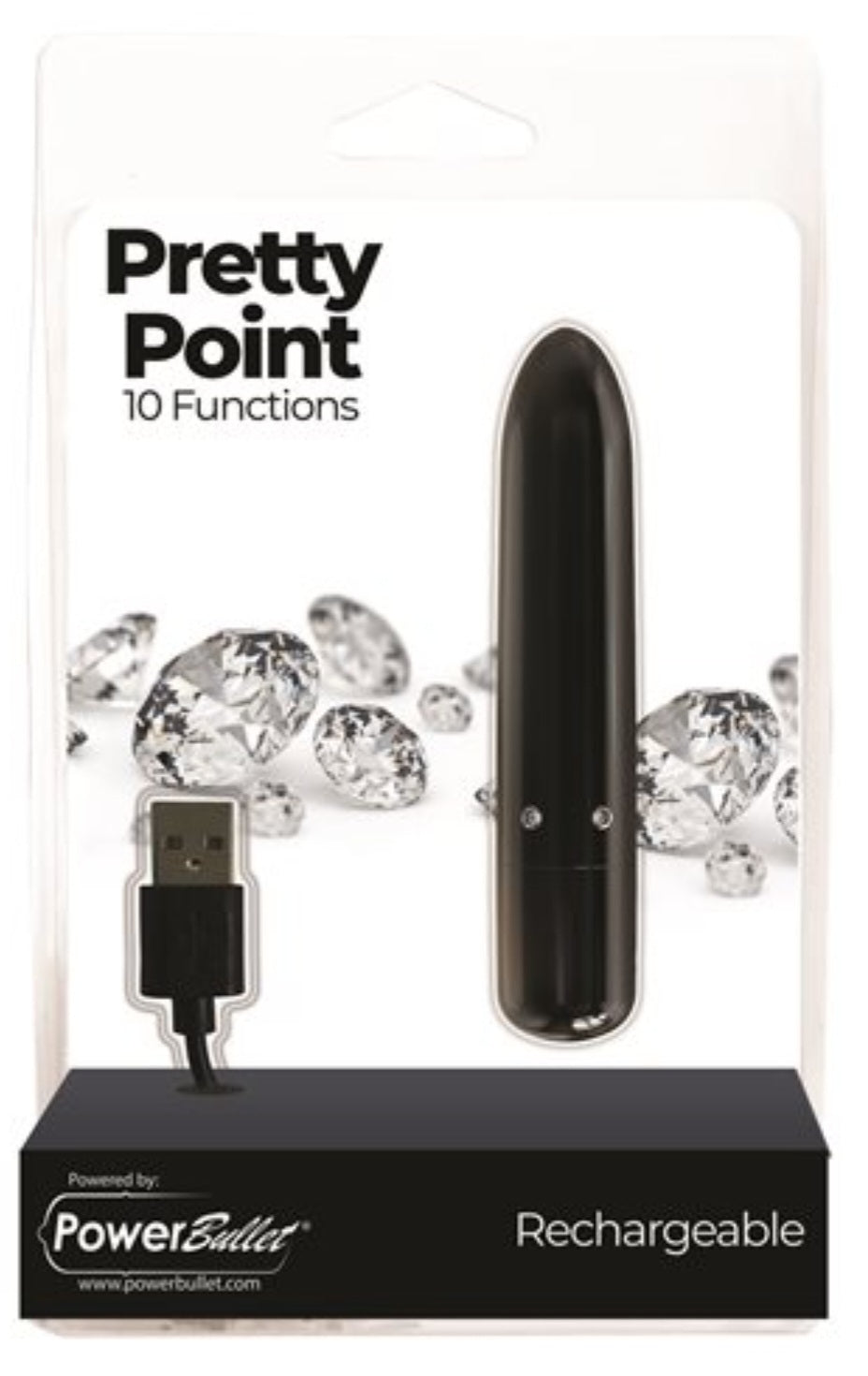 The Pretty Point bullet vibrator is not just a pretty face, it comes with some serious power. Enjoy up to 10 unique functions paired with Power Bullet’s world famous deep and rumbly vibrations that go from mild to wild. A pretty girl’s best friend is a lux inspired bullet vibe accented with crystals for those who are looking for a little glamorous touch, no pun intended. Key features: Bejeweled bullet vibrator. Pointed tip for targeted pleasure. 10 functions. Power Bullet Motor. Body safe material. Compact size. Travel lock. Easy to use. Waterproof vibrations. USB Rechargeable. Dimensions: length 4 inches. Insertion length 2.3 inches. Width 0.5 inch. Diameter 0.7 inch. Body safe materials ABS Plastic and Silicone.