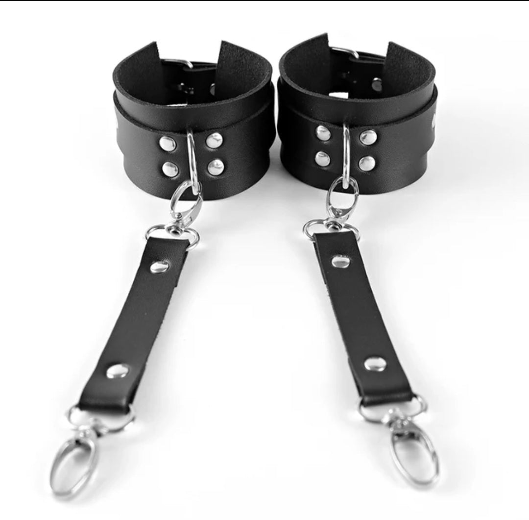 This leather restraint system will make you feel soo sexy! Use for sexy cosplay fun with a partner or take restraints off and use as harness for a night out on the town. For added fun pair with blind fold and feather tickler and feel yourself melt into mush in front of your partner.